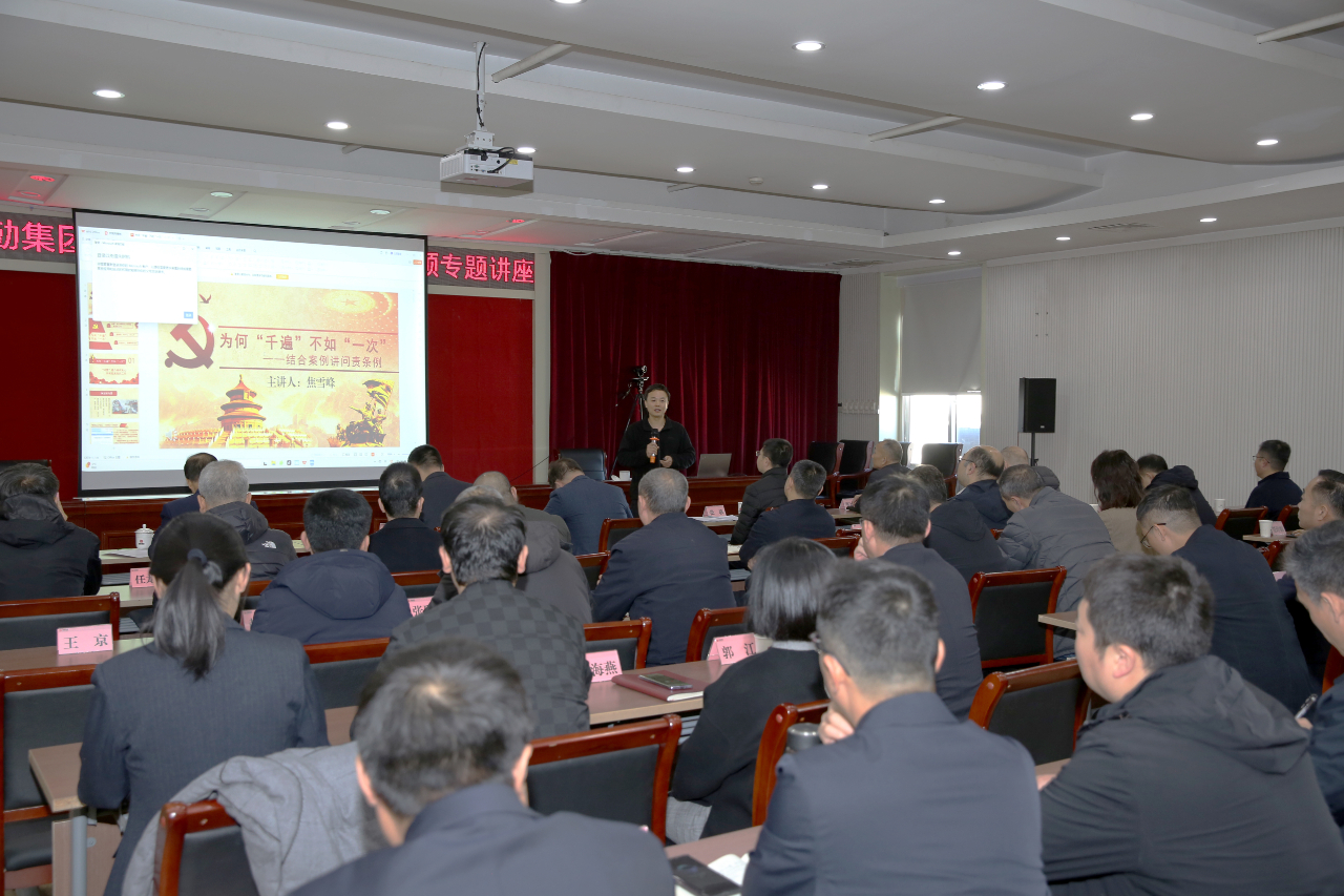 為進(jìn)一步深化清廉企業(yè)建設(shè),扎實(shí)推進(jìn)集團(tuán)黨風(fēng)廉政教育,增強(qiáng)廣大黨員干部廉潔從政意識,切實(shí)改進(jìn)工作作風(fēng),11月23日上午,晉勤集團(tuán)黨委開展了“廉政黨課”暨黨風(fēng)廉政教育集中學(xué)習(xí),邀請汾酒集團(tuán)紀(jì)委委員、綜合室主任焦雪峰同志以《為何“千遍”不如“一次”——結(jié)合案例講問責(zé)條例》為題進(jìn)行專題講座。