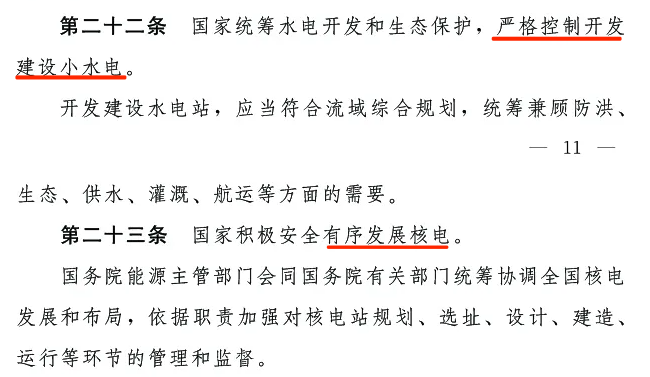 第二十二條:國家統(tǒng)籌水電開發(fā)和生態(tài)保護,嚴格控制開發(fā)建設(shè)小水電。