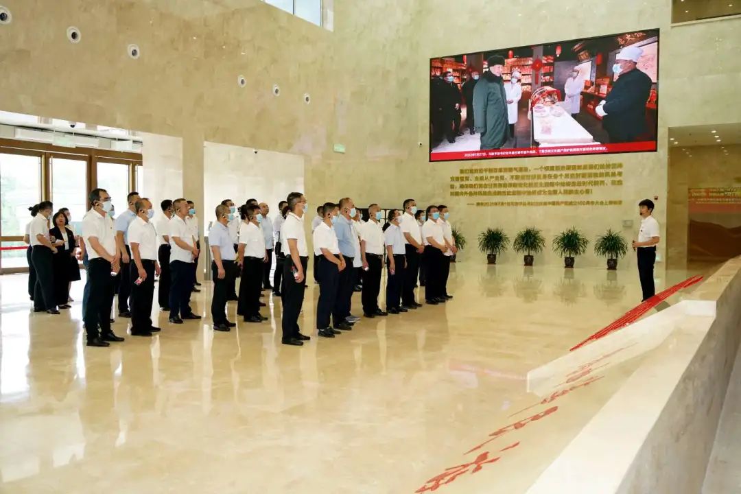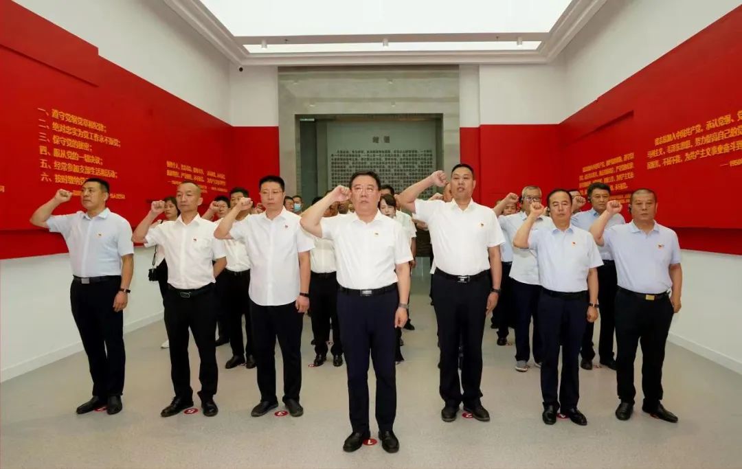 在宣誓廳,大家面向鮮紅的黨旗,高舉右拳,在鏗鏘有力的誓詞中,重溫了宣誓入黨時(shí)的莊嚴(yán)承諾,堅(jiān)定了共產(chǎn)黨員的政治責(zé)任和初心使命。