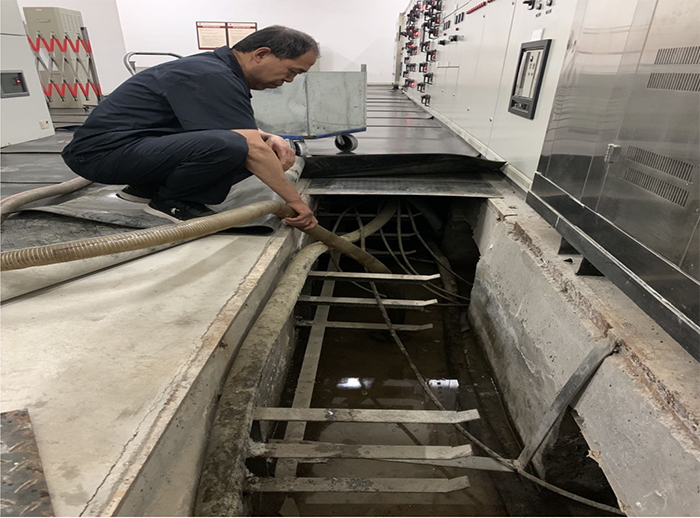 集團(tuán)廣電后勤服務(wù)中心搶修電纜井積水